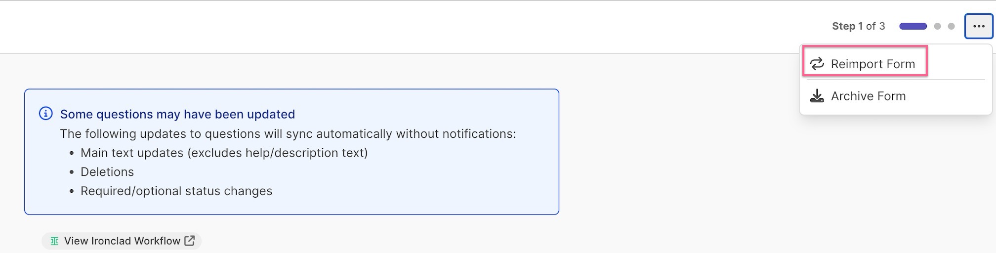 ⚠️ Important: When editing Ironclad forms, there is a Reimport Form option in the dropdown menu. This should only be used if you want to clear all existing settings for the form or as a troubleshooting step.